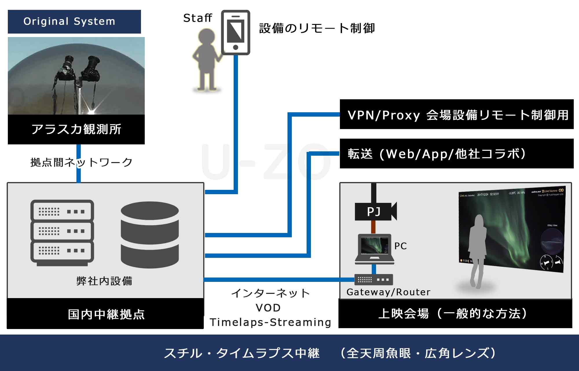 アラスカ観測所から届く中継映像は、国内弊社拠点を経由して様々な形式・媒体に転送を行います。